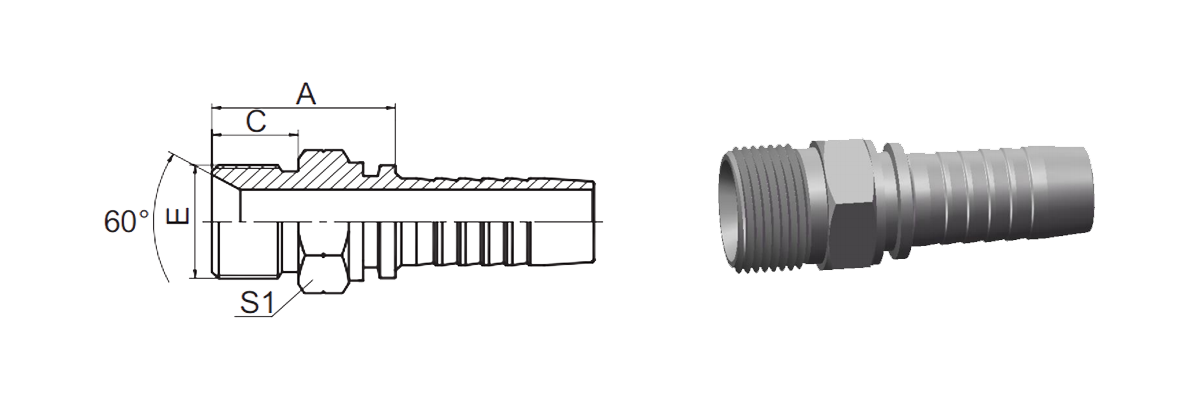 12611 BSP Мужское 60° Конусное сиденье