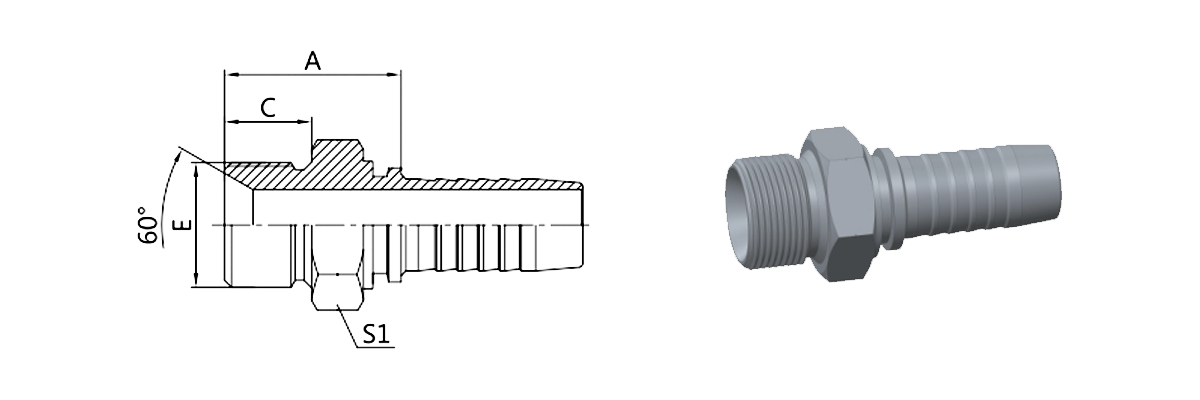 Дом / Продукт / Стандартный фитинг шланга / Фитинг по британскому стандарту / 12611A BSP Male двойного назначения для конусного сиденья 60° или клеевого уплотнения