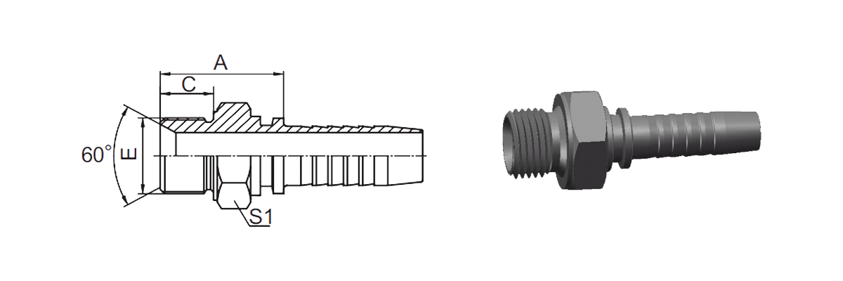 Дом / Продукт / Стандартный фитинг шланга / Метрический стандартный фитинг / 10611 Метрический штекер двойного назначения для 60° конусного сиденья или клеевого уплотнения