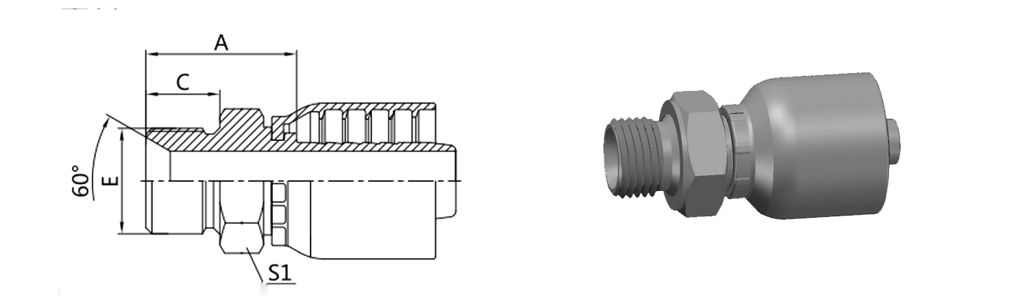 Дом / Продукт / Цельный фитинг для шланга для стандарта OPK / Метрический штекер 10611-RW двойного назначения для конусного седла 60° или клеевого уплотнения