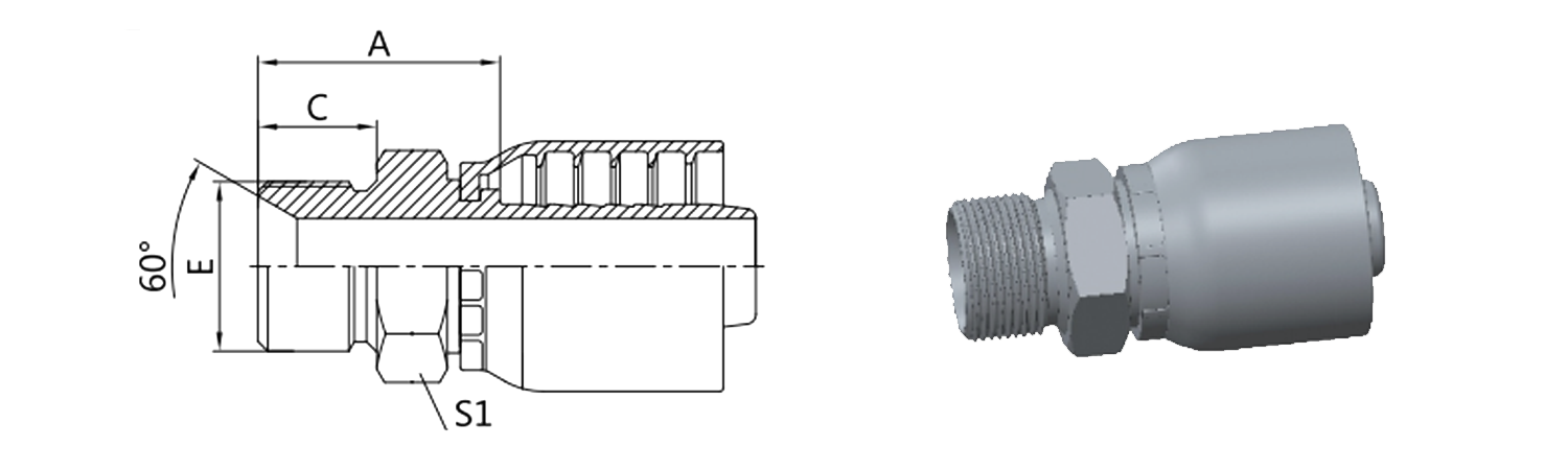 Дом / Продукт / Цельный фитинг для шланга для стандарта OPK / 12611A-RW BSP Мужской Двойное использование для 60° Коническое сиденье или склеенное уплотнение