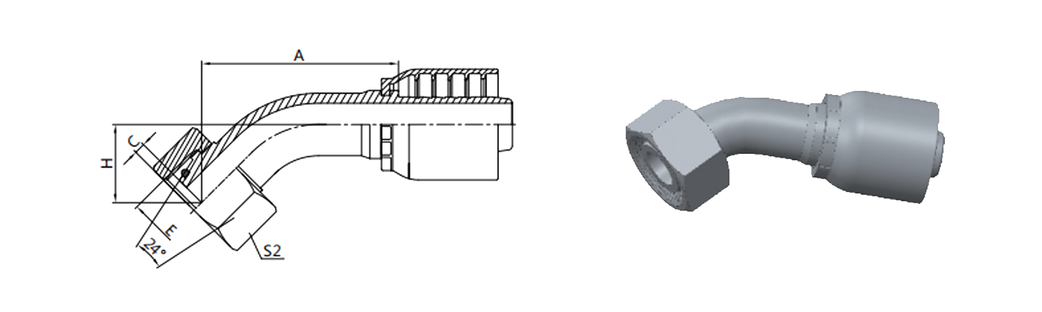 Дом / Продукт / Цельный фитинг для шланга для стандарта OPK / 20541-RW 45° метрическое женское 24° коническое уплотнительное кольцо HTDIN3865