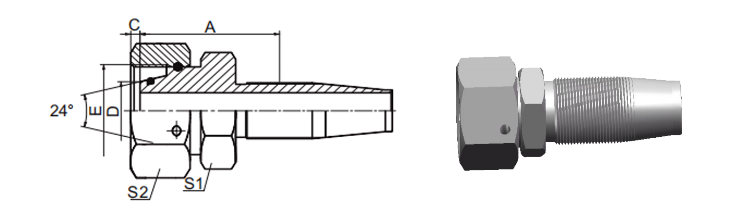 Дом / Продукт / Многоразовый фитинг для шланга / 20418DW Метрическое женское 24°Конусное уплотнительное кольцо LT